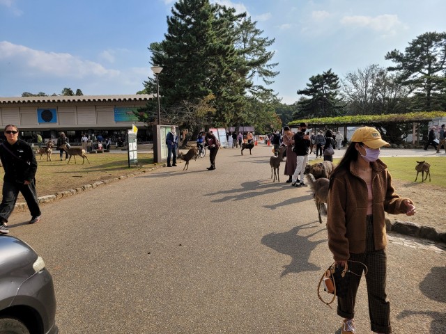 Na itt aztán már indul a szarvasokban fetrengés. (Pedig még nem is tudtuk, hogy lesz ennél is fokozottabb élmény.) Mindenhol ott voltak, és tényleg megtanulták a két legfontosabb trükköt: Ha kérnek eleséget (200 yenért árulták több helyen) akkor odajönnek és bólogatni kezdetenek, hogy “igen, ÉN kérnék.” (lásed az uccsó videó). A másik, ha az ember felemeli mindkét kezét a feje fölé kinyitott tenyérrel, akkor megértik, hogy vagy elfogyott, vagy nem akar a rohadék adni.