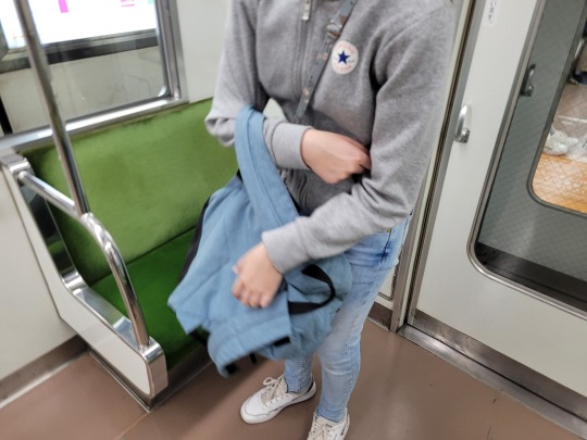 Átszállás a kevéssé jellemző kiotói metrók egyikére. Csekély mennyiségű folt a plüss üléshuzaton (padlóra nem térek ki, mert már én is unom).