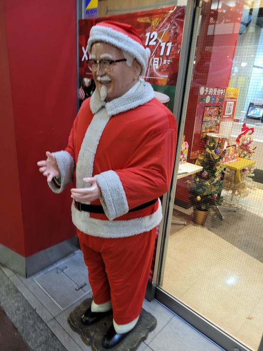 Írtózatosan creepy télapó. De most jövök rá utólag, hogy ez a KFC előtt van vagyis igazából Colonel Sanders csak amolyan szegény ember Madam Tussaud múzeumából.