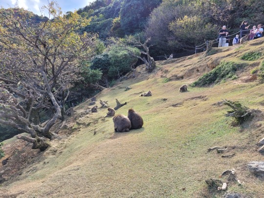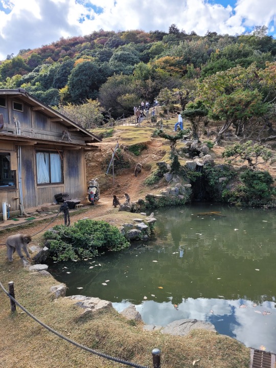Az etetőházban egyébként nem majmok voltak, hanem emberek. 🙂 Bentről lehetett kifelé etetni a saját testi épségünk érdekében rácson keresztül ráadásul egy ilyen tévé társaságában: