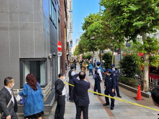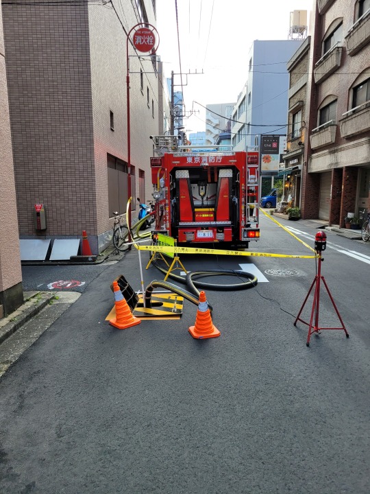 Sétálunk tovább – még mindig kicsit hitetlenül – azzal a céllal, hogy oké, akkor keressük meg a szállodát, ahol korábban aludtunk így végleg bebizonyosodik, hogy ugyanott vagyunk. Megtaláltuk, de ez még semmi, mert pár méterre tőle ugyanahhoz az épülethez ugyan úgy tűzoltók és rendőrök vonultak ki mint kb. 1 héttel ezelőtt (azt hiszem, sajnos akkor nem fotóztam, mert igyekeztünk Oszakába).