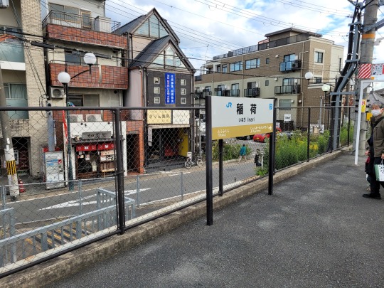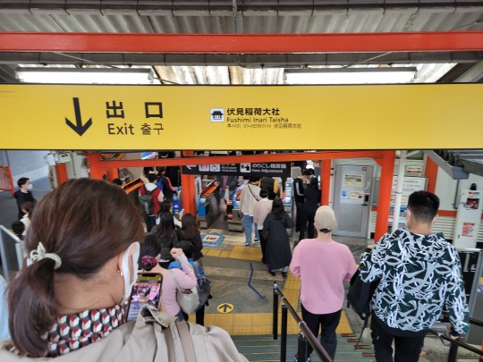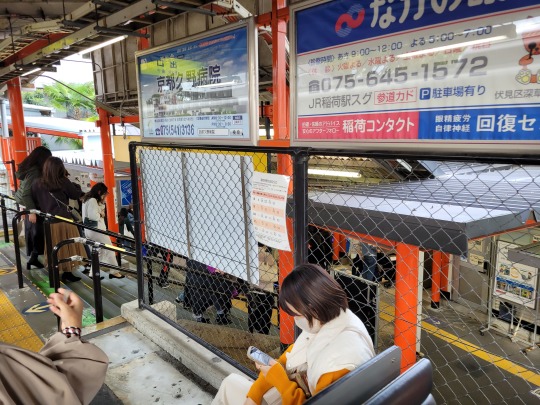 Megérkeztünk az Inari megállóhoz, ahol- megdöbbentő – az Inari szentély található. Az viszont tök menő, hogy már az állomás oszlopai, kijárata a szentély narancsárgájára vannak festve.